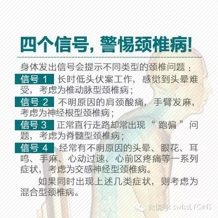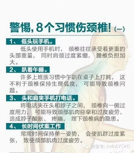 据调查, 70%-80%的人,一生中或多或少会出现颈椎问题。颈椎病的发病年龄从40岁提前到30岁,成为白领职业病。“电脑颈”成了上班族健康杀手。颈椎病的危害可不只是脖子痛那么简单,严重时可导致瘫痪!爱护颈椎,提早预防,及时治疗。为健康转发!